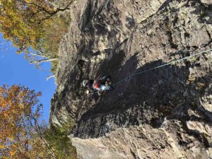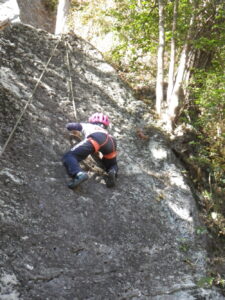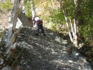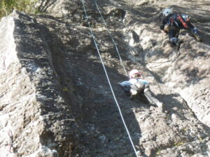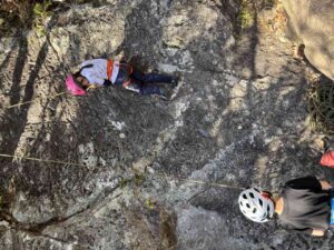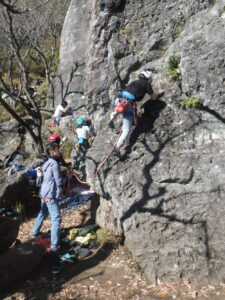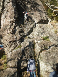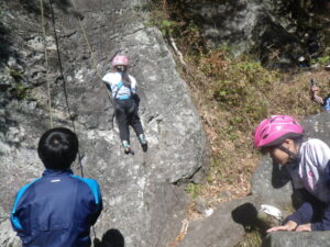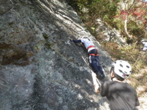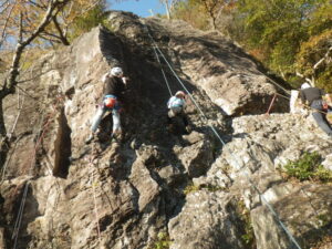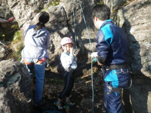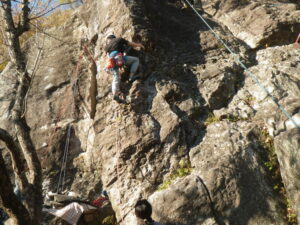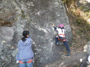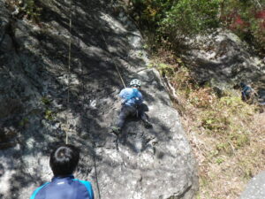 トップロープを張ったり回収したりといった作業を実地訓練という形で頑張ってもらっています。