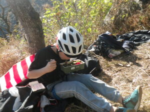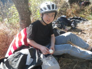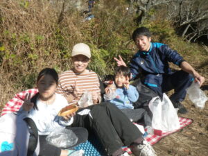 りほちゃんは、「お弁当を入れたリュックをしょって登って、ルートのてっぺんでお弁当を食べる![]()