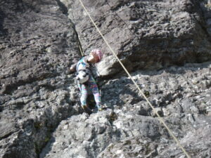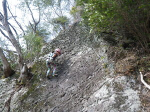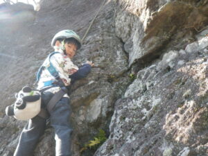 ノーテンで完登して、「海、見えるかな~」 岩場でのロワーダウンも上手になって来ました