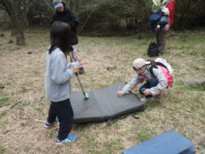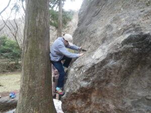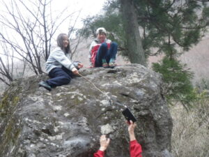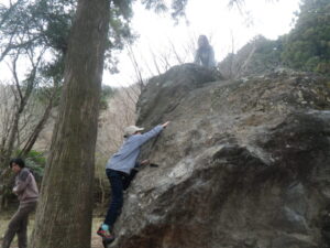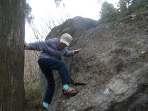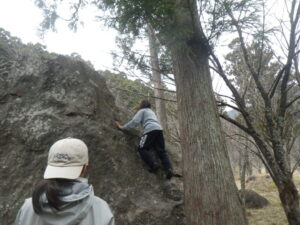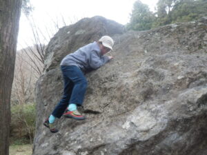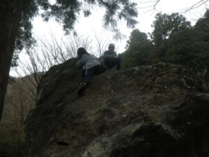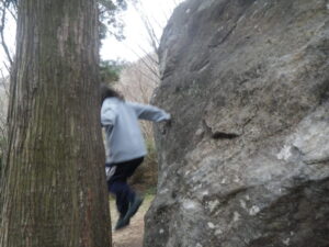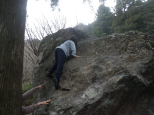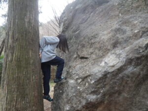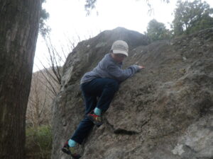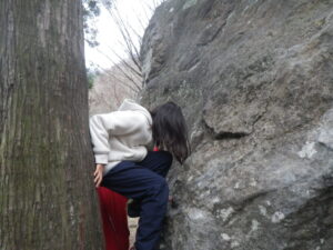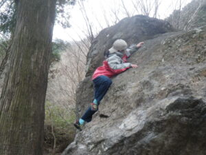 この「桜岩」も、自然の岩に馴れていない子どもたちにとっては 立派な「課題」となり得ます。