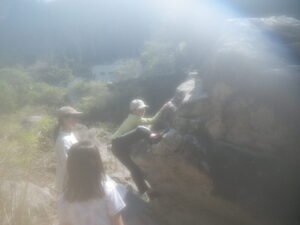 ↓逆光だけれど…B岩のマントル課題は2人で研究の末、2人とも完登出来ました