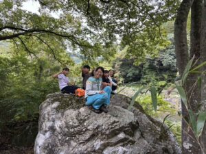みんなで岩の上に立ってみて、降り方もチェックして…さぁ